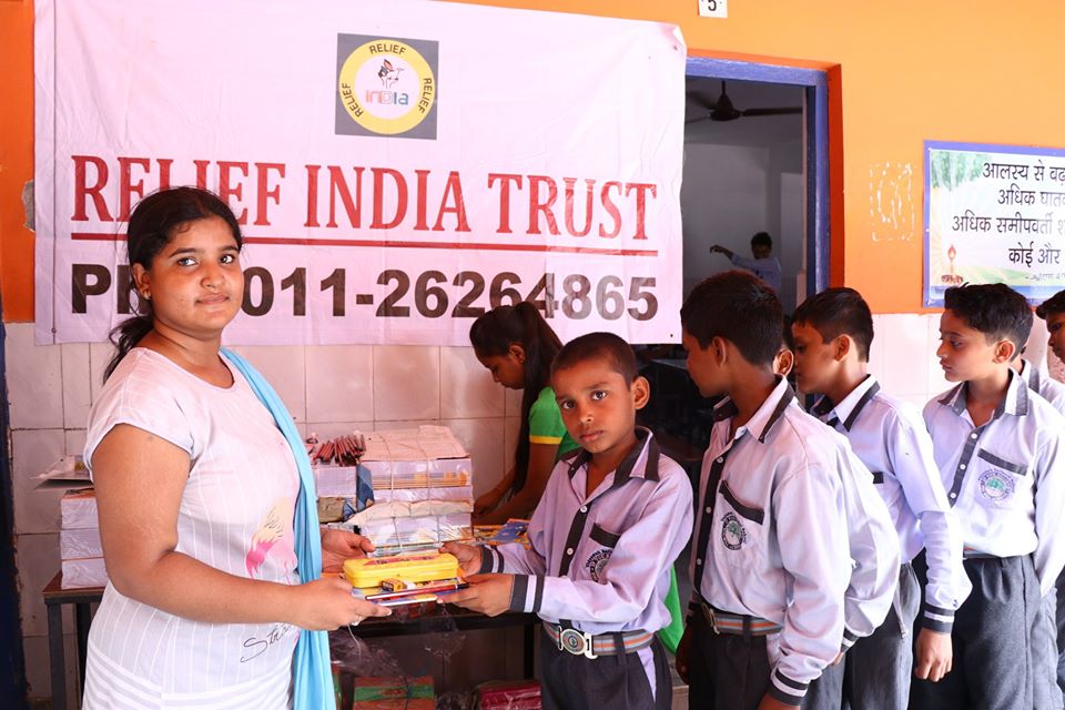 We keep distributing study material at school and in prodh shiksha mission. There were great enthusiasm among the old age people when Relief India Trust distributed the study material. Savita Devi (age 65) was very happy and full of enthusiasm when she received the study material.